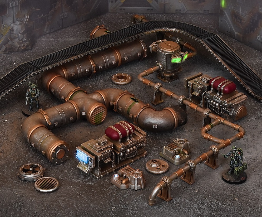 This set contains over 100 pieces of modular terrain, allowing you to construct a range of pipes and machinery that will provide plenty of cover for any wargame.