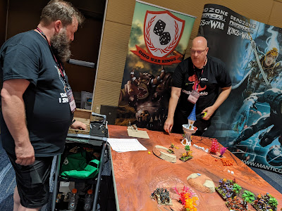 We had a pair of special guest - the past two winners of the UK Clash of Kings (with full Mantic armies) - Tom Robinson and Steve Hildrew. A couple of great guys who really gave us yanks a run for their money.