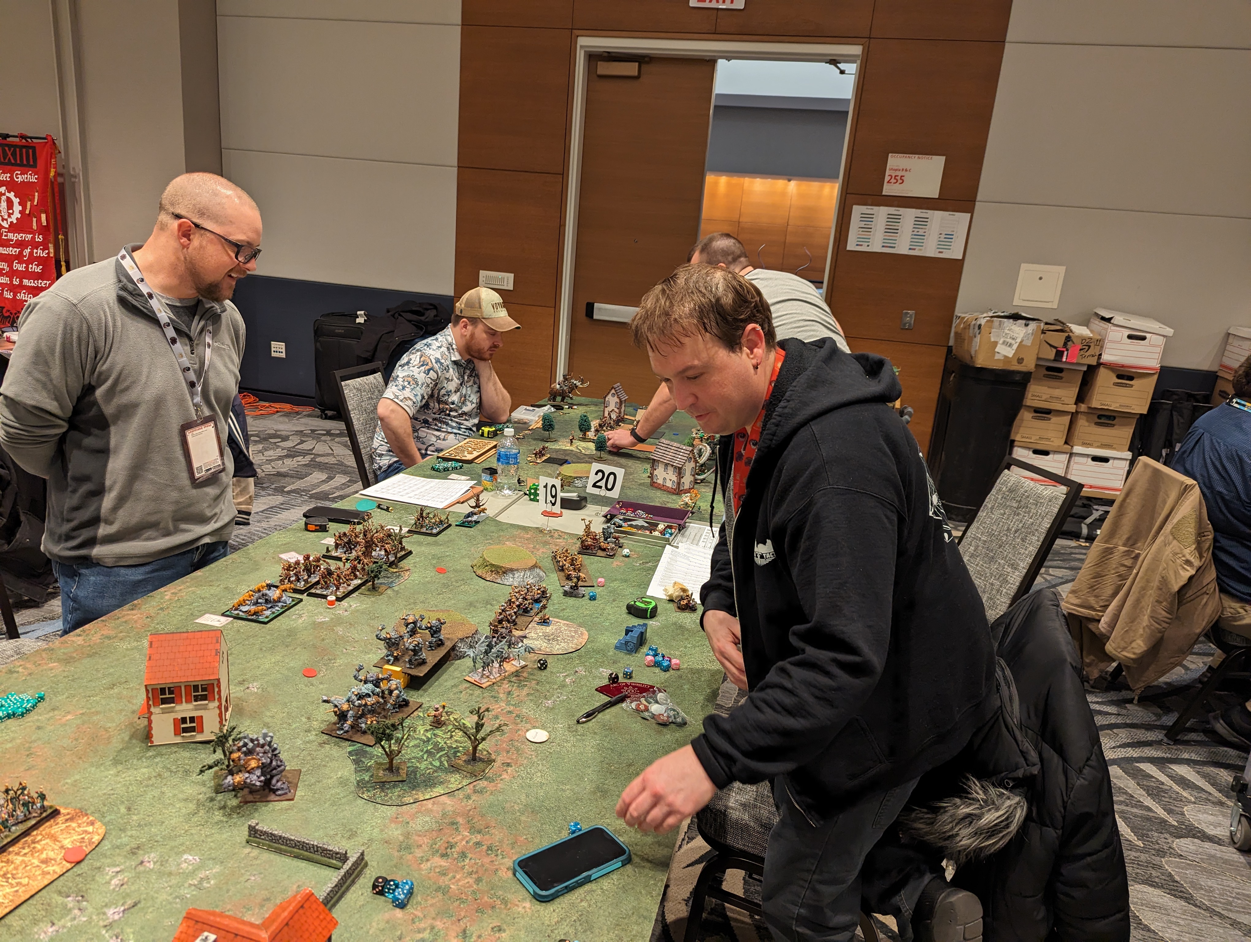 I did want to mention that I used the Mantic Tournament Companion to run the tournament, and while it is still fairly limited, it worked pretty well for the actual pairings and game scores, with pairings going out and everyone entering their results from their phones, with very few corrections from me. It does not, however, handle soft scores in any way that is close to useful (and those are a big part of any tournaments I run). However it is MUCH easier to do pairings and have players enter their own results in the tournament companion and then copy the over to warscore where I can add the rest of the scores than to go the other way around (i.e. do pairing in warscore then try to put them in the companion). This looks like it will work for actually running tournaments, and I love having players submit their lists to the companion as well, but it is a long way from replacing the software I have been using for over 10 years.