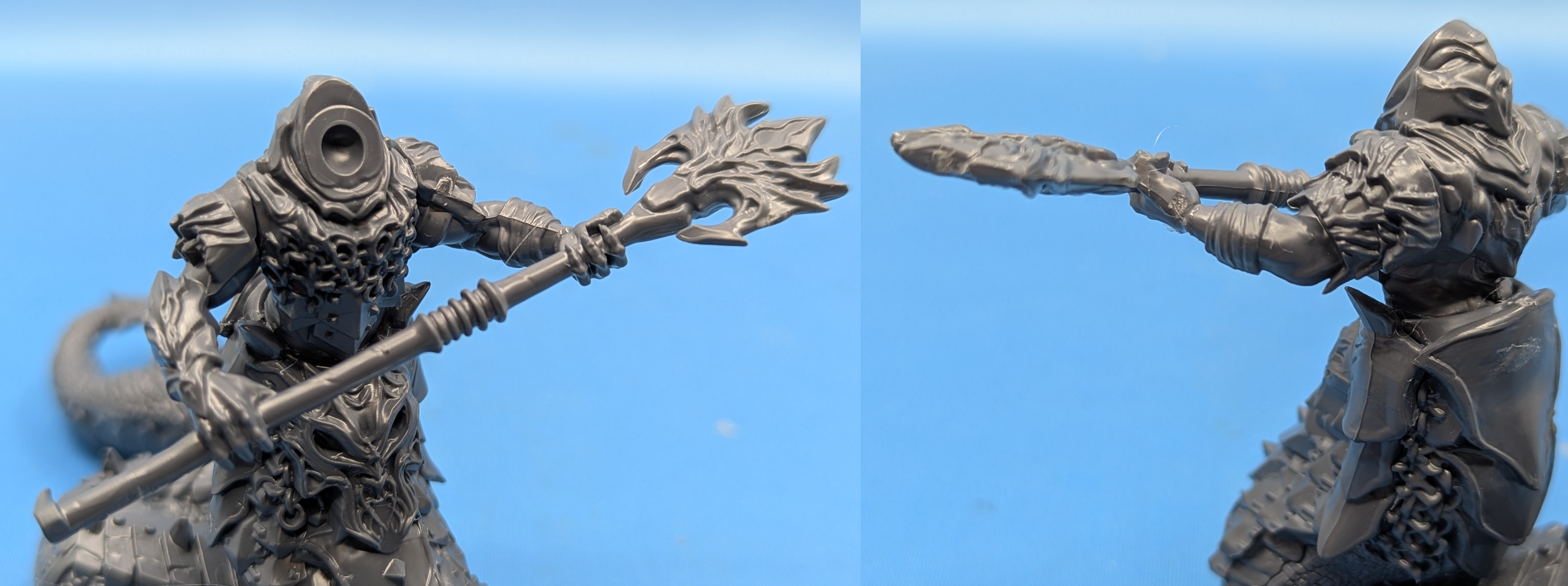 This one feels weird to put together, as the arm is sweeping upward (when in general you think of 2 handed weapons moving downward to strike)